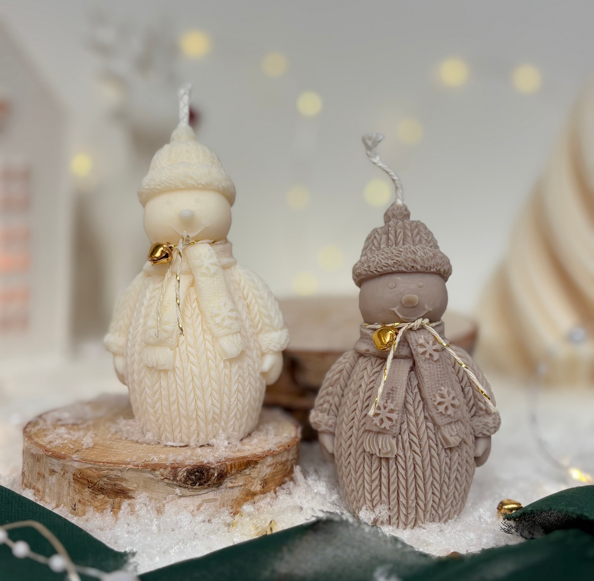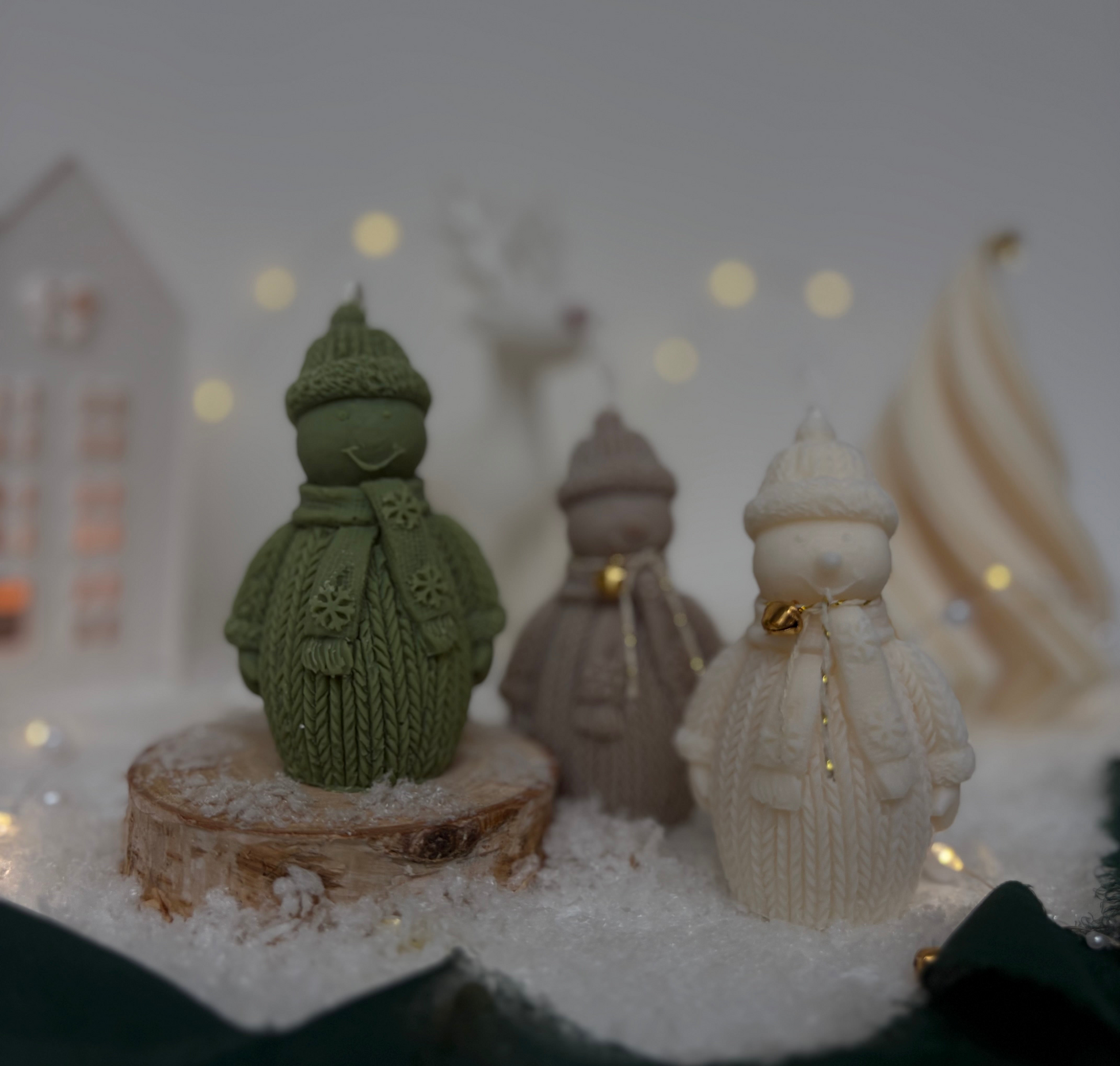 ⛄ Bougie Bonhomme de Neige – Cire de soja & parfums de Noël