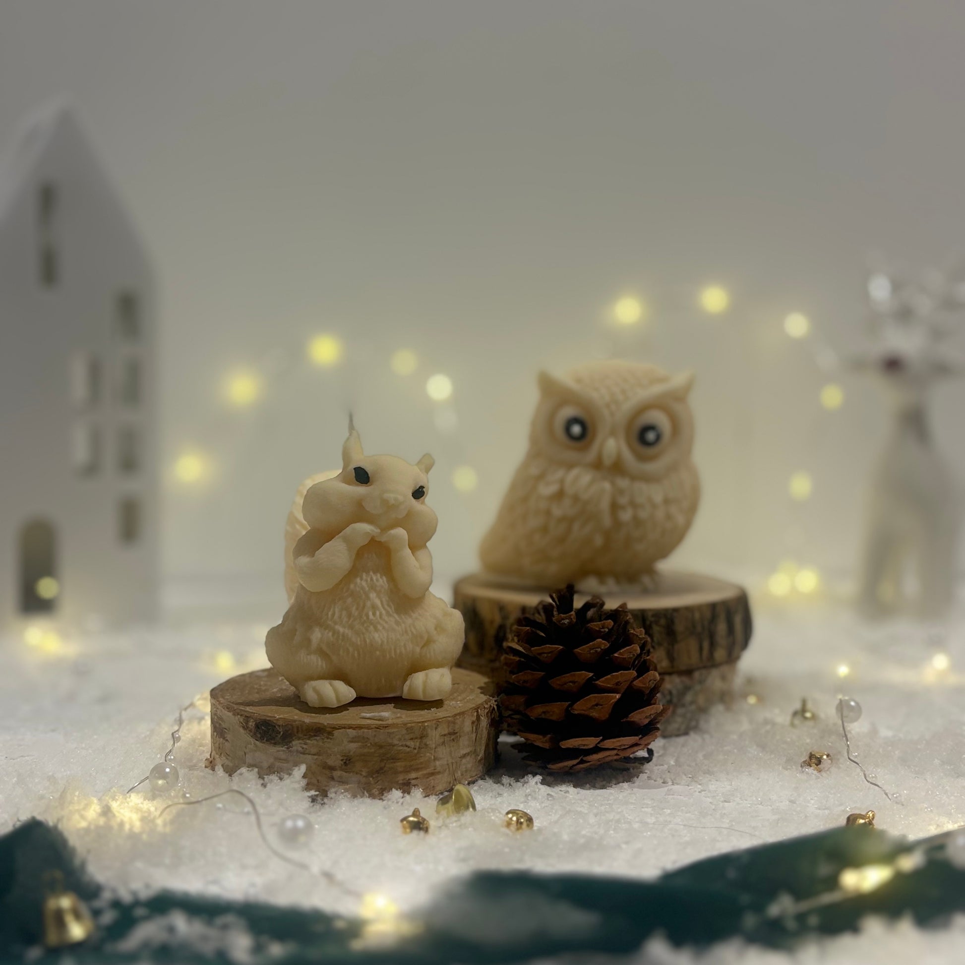 L’hiver s’invite chez vous avec notre bougie hiboux en cire de soja !