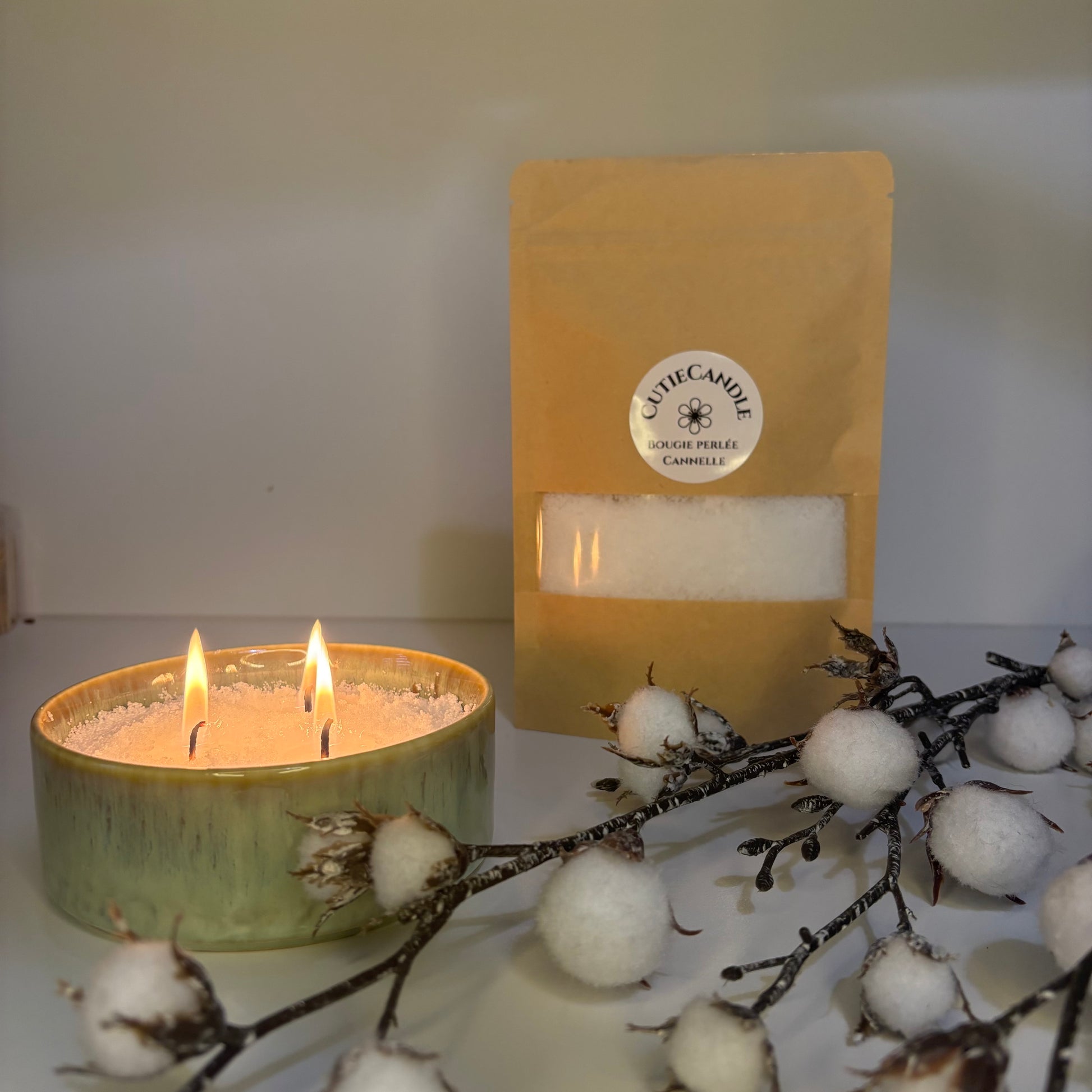 Bougie Perlée – Cire de soja rechargeable